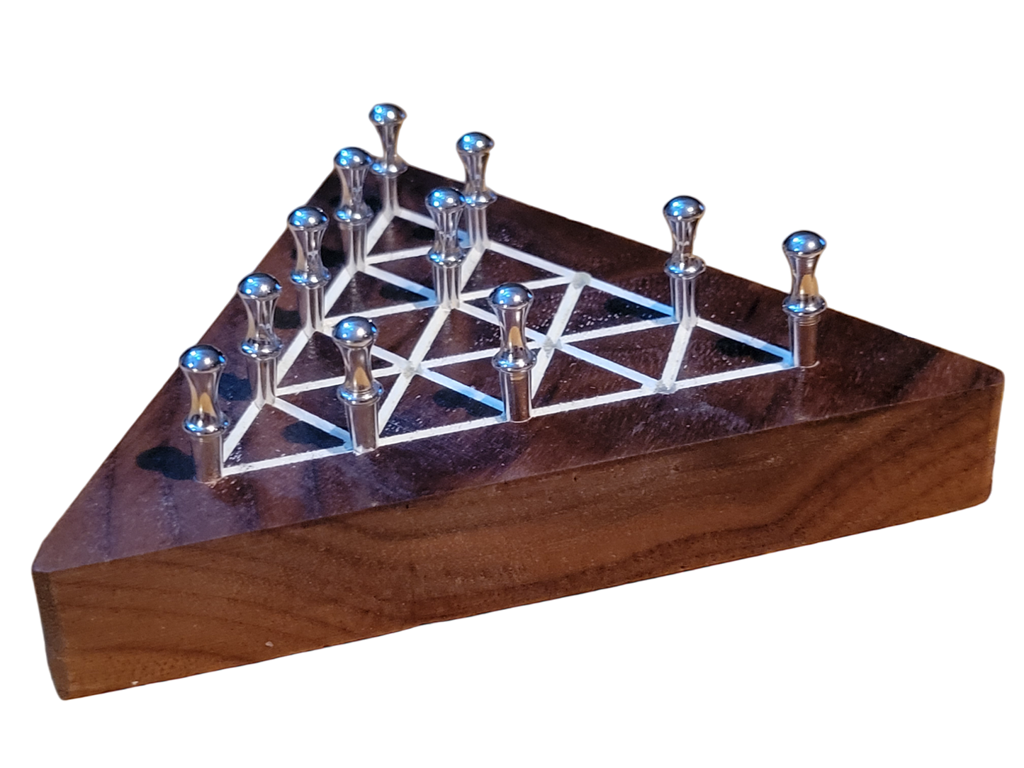 Classic strategy game. Constructed of solid walnut and includes metal cribbage pegs. Polyurethane finish.